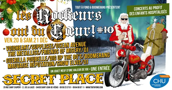 À la Secret Place, le principe est le même : plusieurs artistes de la scène rock se produisent sur la scène de la Secret Place au profit des enfants défavorisés. Pour les spectateurs, une entrée pour le concert = un jouet neuf d'une valeur de 10€ minimum. Ces jouets seront ensuite donnés au CHU afin d'être offerts lors d'une redistribution aux enfants de 0 à 14 ans.