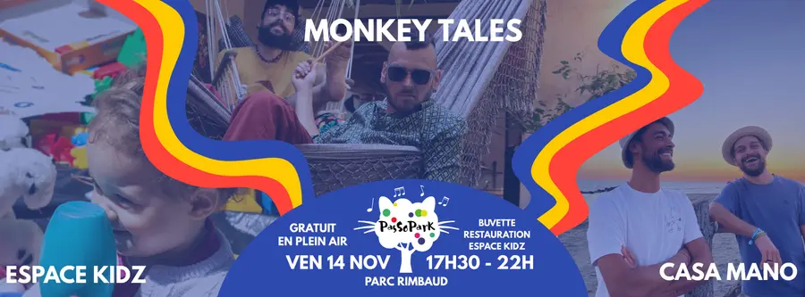 Concerts live de MONKEY TALES et CASA MANO, un Coin Kidz animé par la Maison Pour Tous George Sand et la médiathèque Émile Zola.